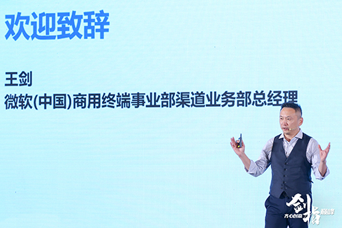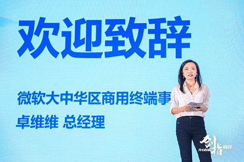 微軟大中華區商用終端事業部總經理卓維維女士和微軟(中國)商用終端事業部渠道業務部總經理王劍先生發表致辭。