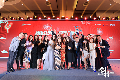 身著筆挺西裝的男士們,優雅長裙的女士們,此刻無不展示著他們作為微軟人最美的笑容。